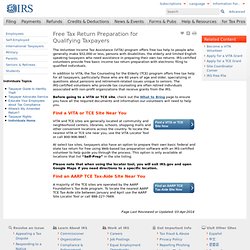 Free Tax Preparation Volunteer Income Tax Assistance (VITA) Sites File your own taxes online for FREE using “MyFreeTaxes These sites specialize in assisting seniors but are not limited to those returns. ... Fetch Content